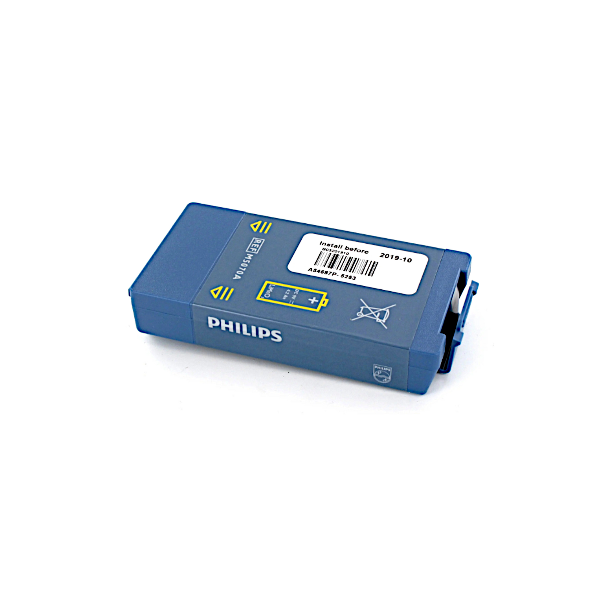 La batería Philips M5070A es compatible con los AED HeartStart OnSite, Home y FRx. Ofrece hasta 4 horas de uso o 200 descargas, con una vida útil en espera de 5 años. Asegura un rendimiento confiable para emergencias.