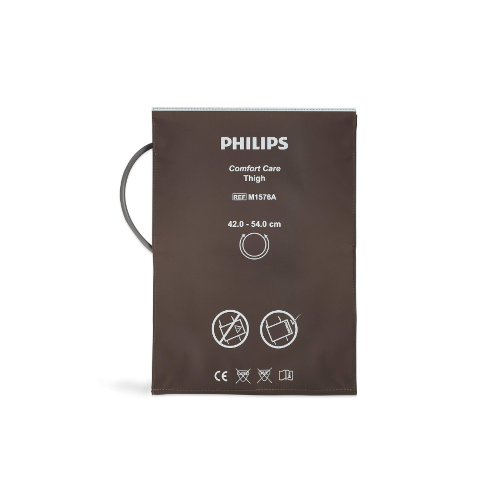 El brazalete reutilizable NIBP Comfort Care de Philips (M1576A) está diseñado para medir la presión arterial en el muslo de adultos, adecuado para circunferencias de 42-54 cm. Fabricado con material suave e impermeable, ofrece comodidad y resistencia en entornos clínicos exigentes.
