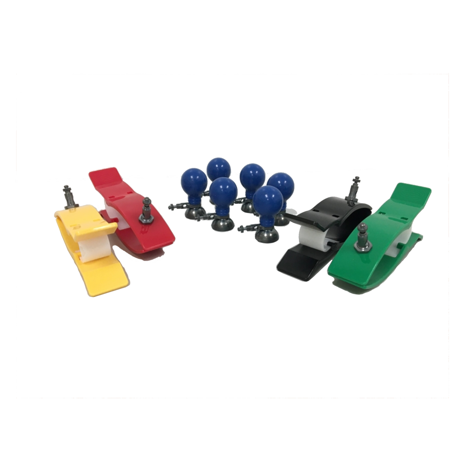 Juego de electrodos reutilizables adulto. Incluye 6 electrodos de succión y 4 electrodos tipo pinza para las extremidades.